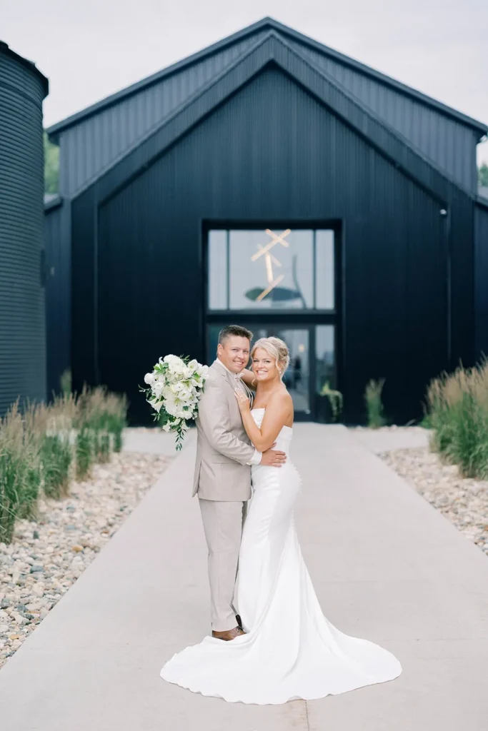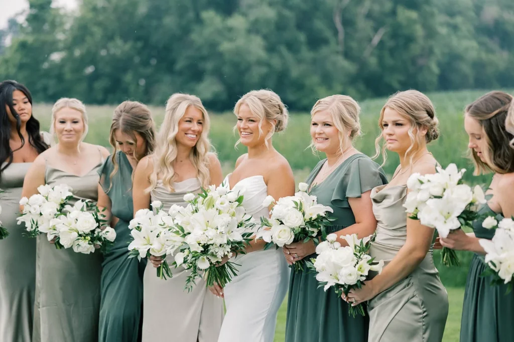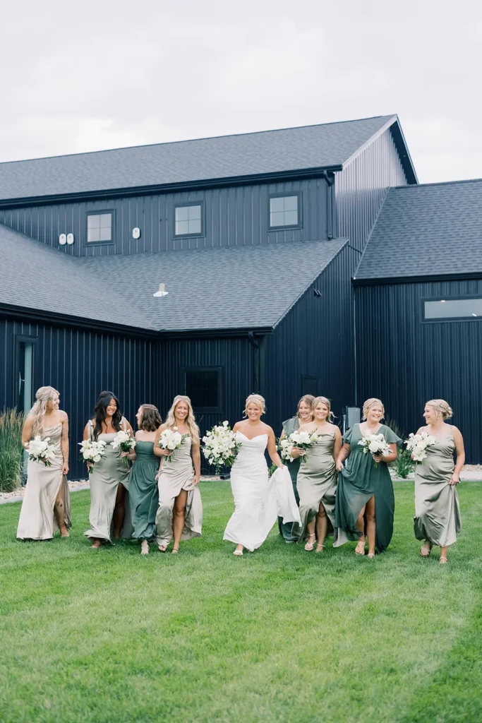 Friday, July 11, 2025 – This celebration at The Pines Weddings & Events shows a beautiful, green and white wedding designed for a 339-guest count in the Fargo-Moorhead area. This North Dakota love story shows the beauty of a modern, summer reception in our Pines Black venue. Featured in this blog is an off-site, white florals, green bridesmaid dresses, and a classic touch to the industrial Pines Black atmosphere. Some of Fargo’s premier wedding vendors helped to make this day special including: Love Always with the breath-taking floral and a buffet-style wedding dinner by Chef’s Table catering. The lovely photography done by Liv by Grace captured this day and our space beautifully.