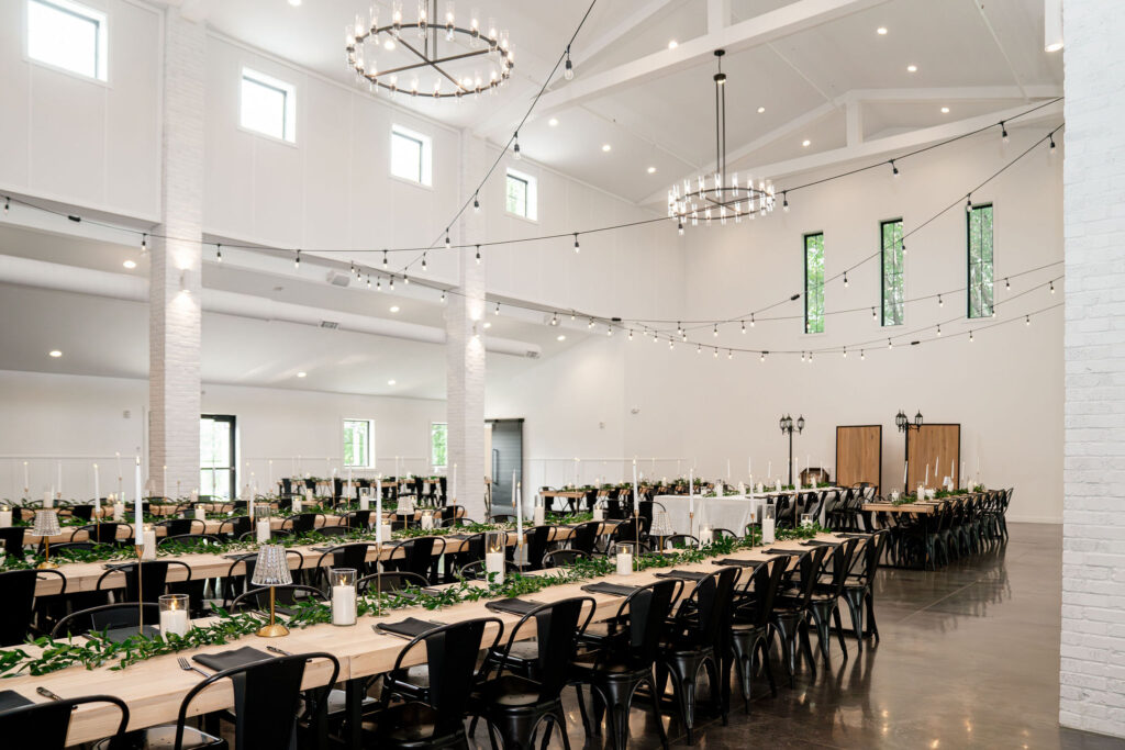 This celebration is a great reference for couples that are searching for a luxury farm wedding venue near Fargo, ND. Pines Black is an industrial wedding venue in Fargo ND that can comfortably host 300+ guests with its indoor ceremony, expansive reception hall, and guest prep suites located in the lounge. The Pines venues are great for seamless on-site flow from ceremony to reception with efficient bar and service placement. Flexible table layouts demonstrate how larger guest counts can still feel organized, elevated, and intentionally designed without the need for multiple venue locations, or traveling through out your wedding day. Both of the Pines elegant venues, Pines White and Pines Black are perfect for hosting your special day, all in one-place.